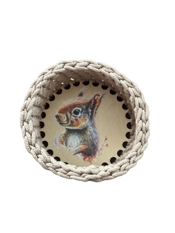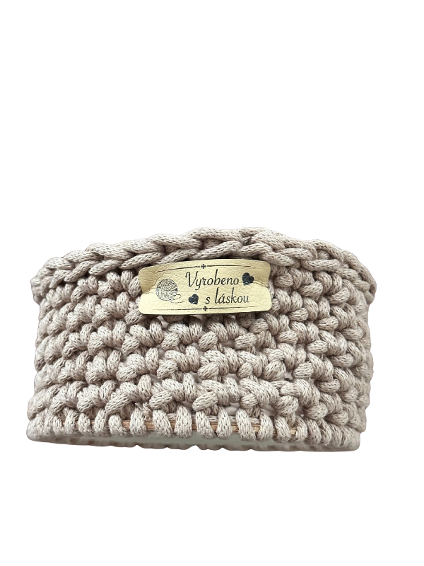 Ručně háčkovaný kulatý košík může sloužit dle vaší fantazie téměř v celém vašem domově. Vnitřní průměr: cca 11,5 cm Výška: cca 7,5 cm Překližkové dno má 3 mm – je dekorované obrázkem. Barevné provedení výrobku může být nepatrně odlišné Tento výrobek je dekorativní předmět, nejedná se o hračku. Není určen pro děti, zejména pro malé děti do 3…