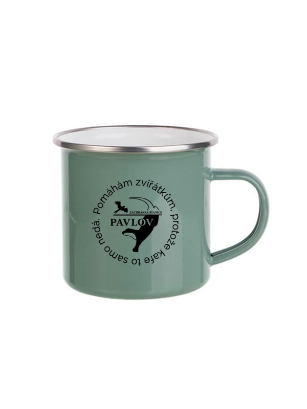 Kovový hrnek, smaltový hrnek – plecháček, výška 80 mm, průměr 57 mm, celkový objem 360 ml, užitný objem 300 ml.