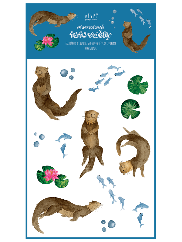 Dočasné tetovací obtisky s autorskými ilustracemi vyder. Velikost archu 10×15 cm. Dočasné tetovačky s autorskými akvarelovými motivy. Tetovačky jsou skvělou ozdobou na léto, oslavy, další speciální příležitosti a nebo prostě jen tak. 🙂 Na rozdíl od opravdového tetování je aplikace tetovaček naprosto bezbolestná a zabere jen chviličku. 🙂 Ke každému archu je přiložen návod k aplikaci jak v…